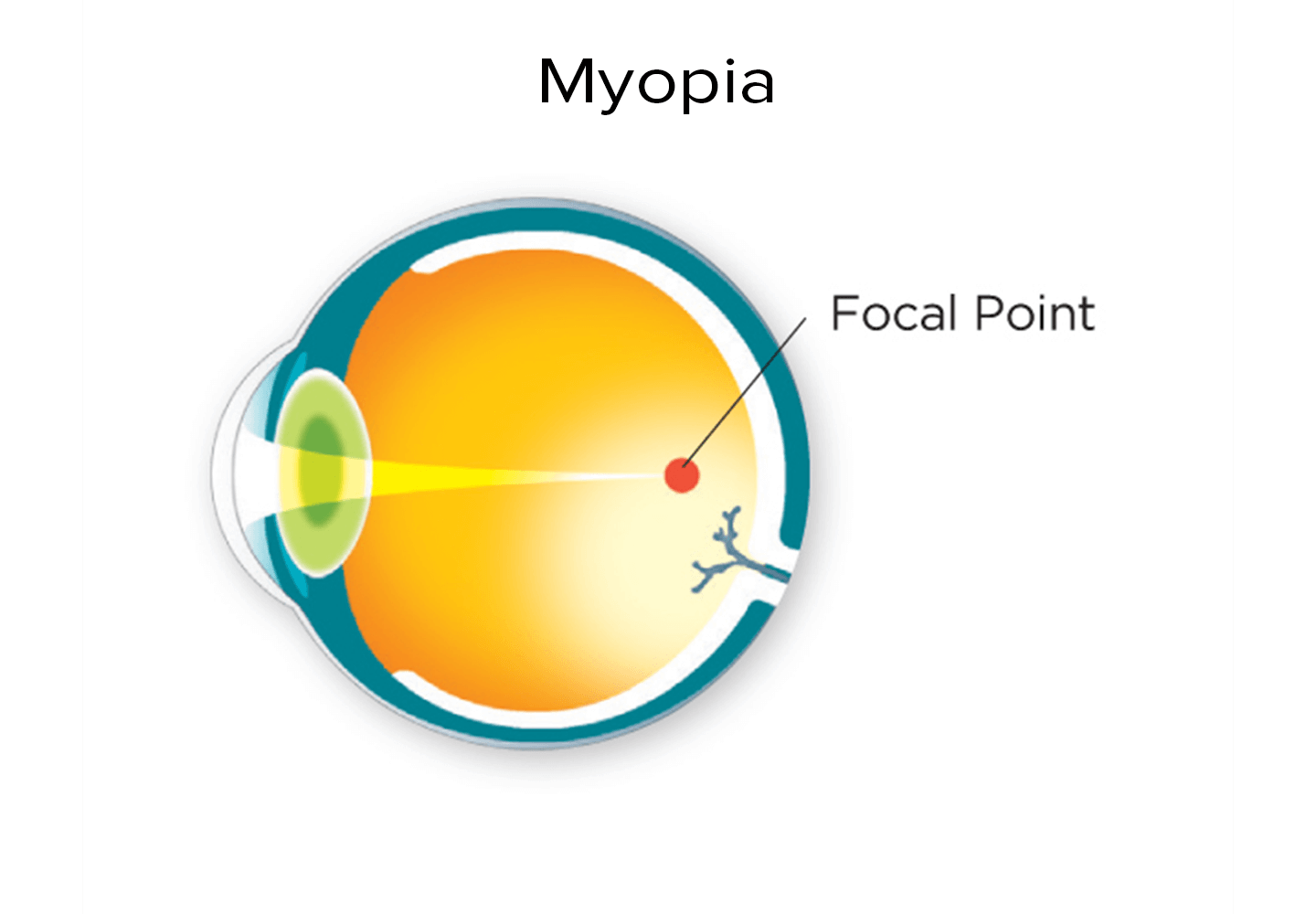 Light rays pass through cornea and lens to converge at a focal point. After penetrating the vitreous humor, which is a gelatinous substance, the point forms an image that is captured by the retina and projects it onto the back of the eye, similar to how camera film works. The image is then sent as nerve pulses to the brain by the optic nerve.